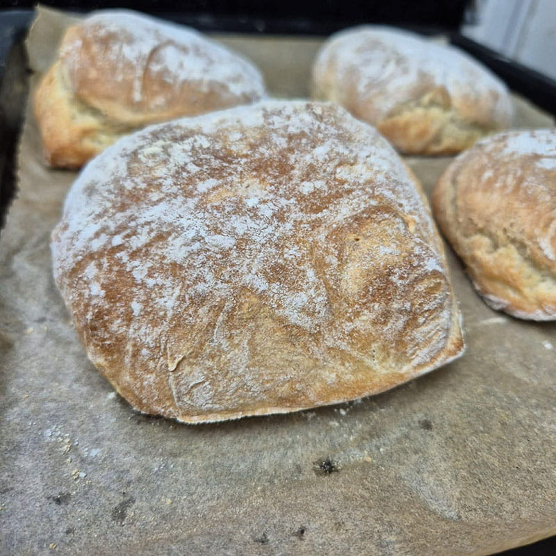 7️⃣ Cuisson Déposez les pains dans un plat allant au four. Enfournez à 200°C pendant 30 minutes, jusqu’à obtenir une belle croûte dorée.